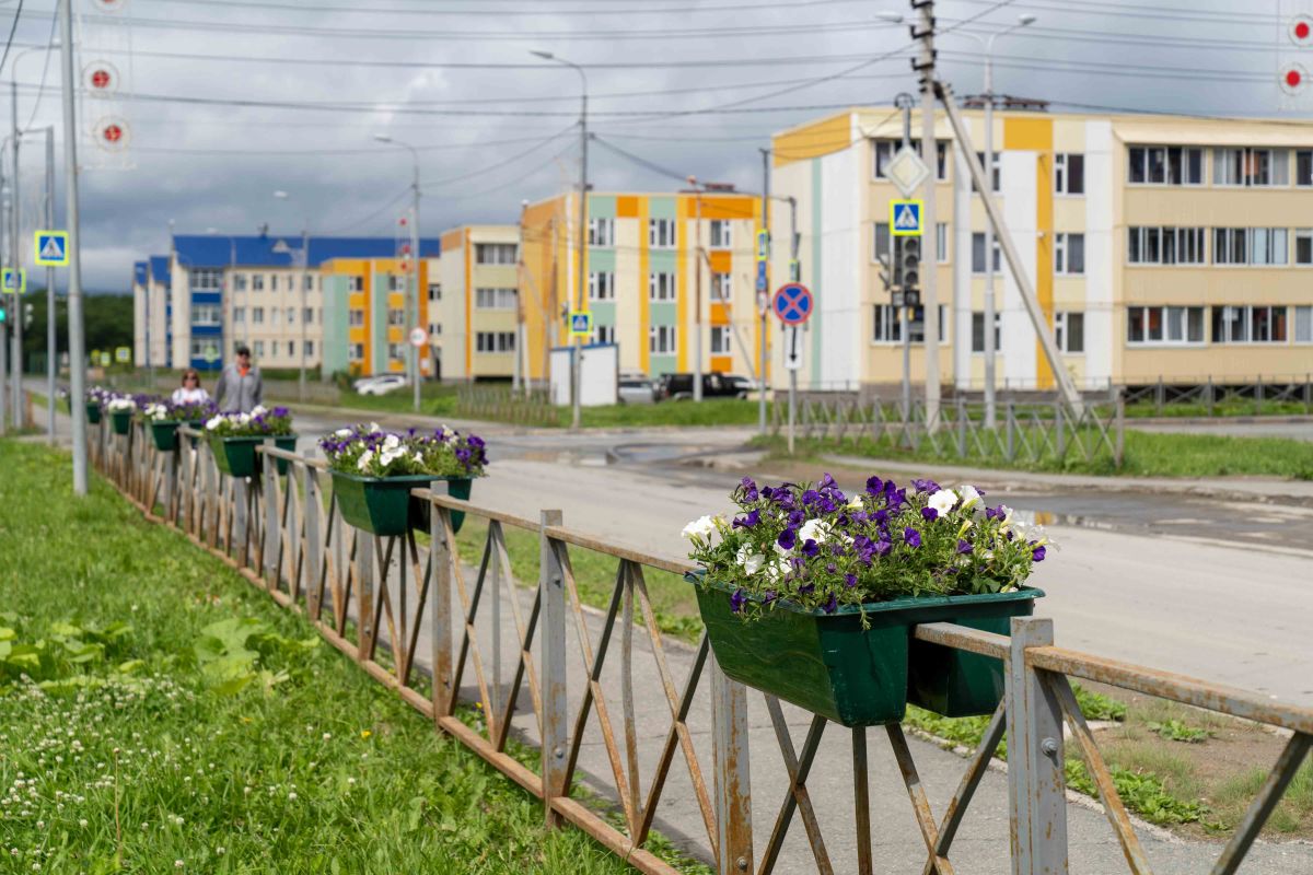 Высадка цветов на территории Южно-Сахалинска проводится в том числе и в планировочных районах города.