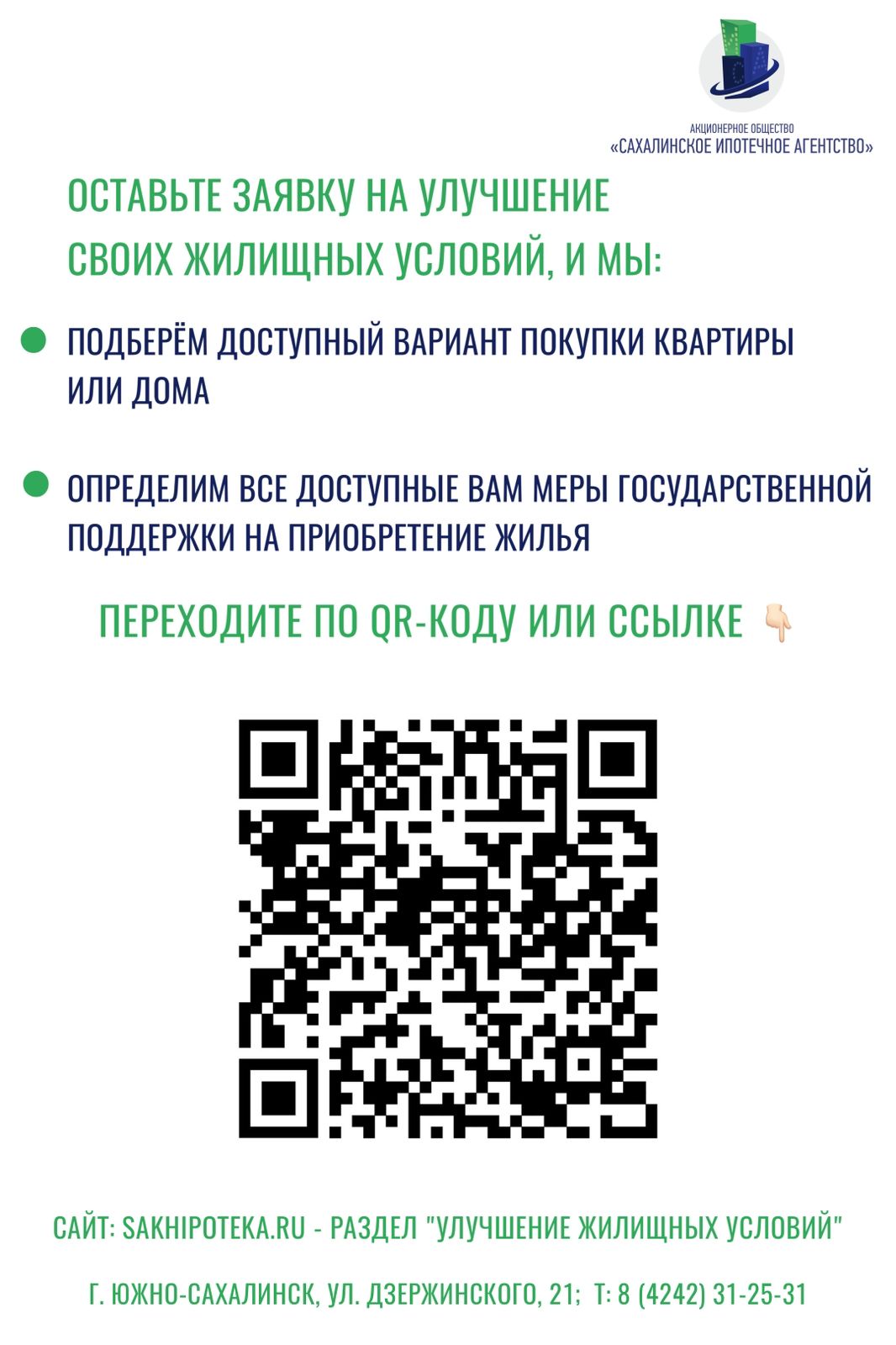 В целях реализации государственной задачи по улучшению жилищных условий граждан АО «Сахалинское ипотечное агентство» запущен электронный сервис,
