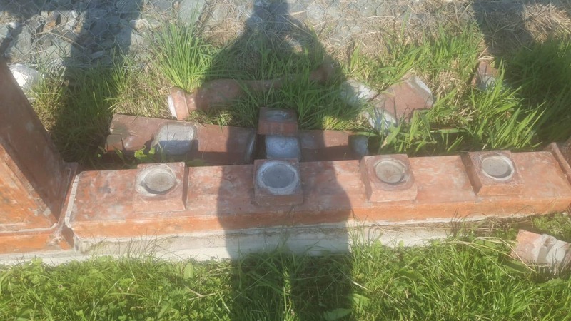 К публикации приложены фотографии, на которых видно, что часть ограждения мемориала сломана.