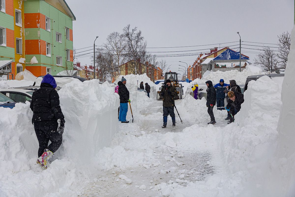 Южносахалинцы продолжают оказывать помощь УК в расчистке дворов