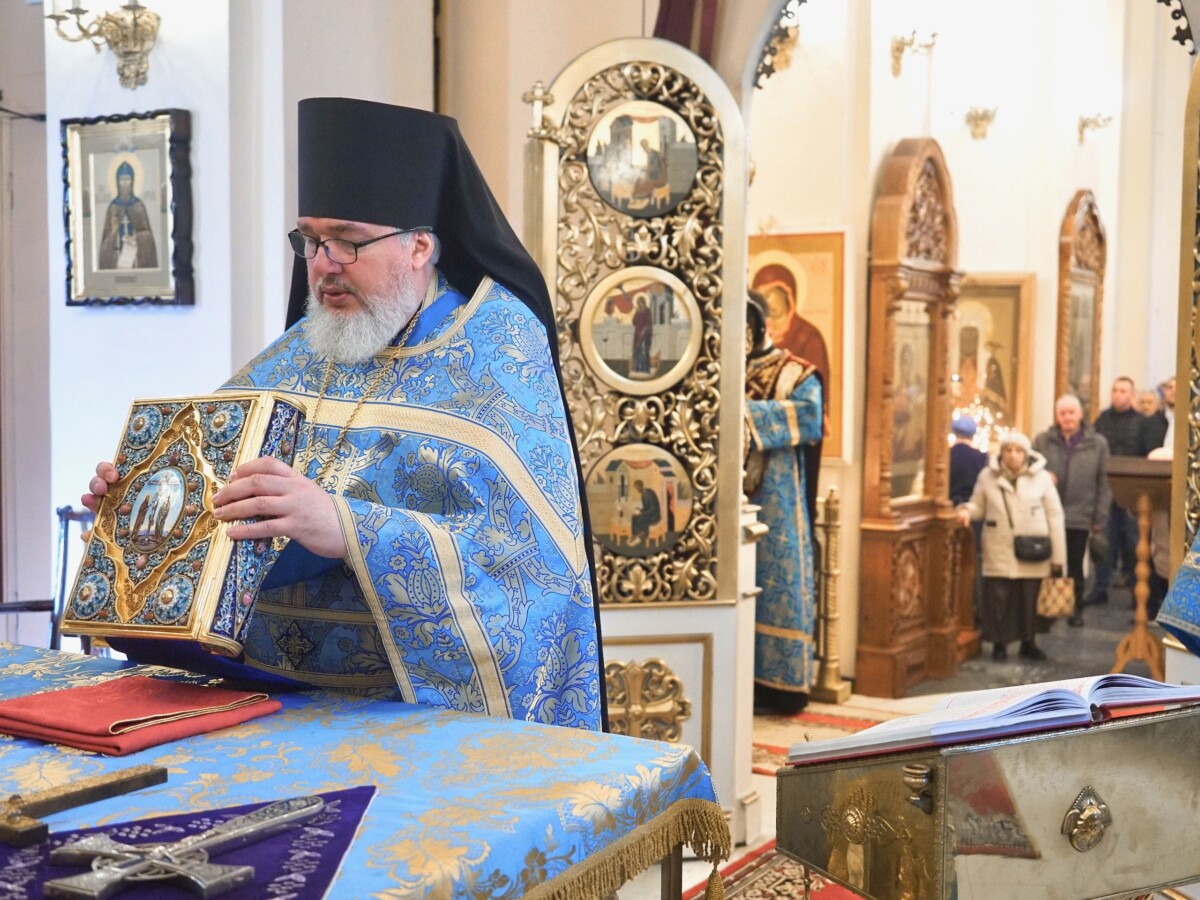 Божественная литургия святителя Василия Великого в Неделю 3-ю Великого поста, Крестопоклонную, праздник Благовещения Пресвятой Богородицы, день преставления святителя Тихона, Патриарха Московского и всея России.
