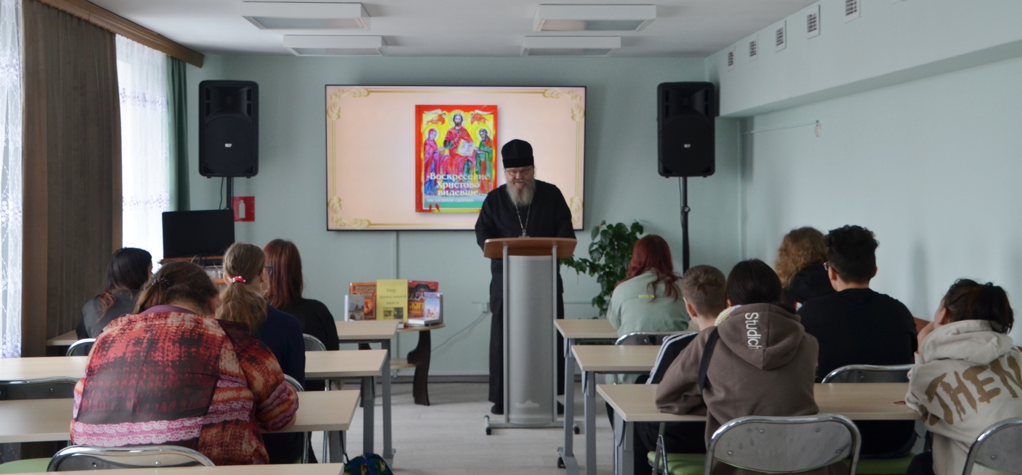 В центральной библиотеке им. М. С. Мицуля 31 марта ко дню православной книги для учащихся школ города прошел литературный обзор книг православной тематики «Через книгу к добру и свету». Школьники познакомились со святыми местами на Руси, историей православных храмов и монастырей, их святынях, облике и внутреннем убранстве. С книгами, повествующими о святых и праведниках земли русской, их жизнью и подвигами, поучительными причтами. Узнали о православных праздниках. Интерес вызвала книга «Бог и Победа», в которую вошли рассказы и свидетельства очевидцев о помощи Божией России в Великую Отечественную войну. Представленная книжная выставка «Мир православной литературы» раскрыла перед читателями духовно — нравственные ориентиры, способствующие повышению интереса к чтению православной литературы. С пастырским словом выступил настоятель храма Покрова Пресвятой Богородицы игумен Амвросий, сказав, что православная книга служит просвещению ума и сердца и является «духовным» лекарством для всех, кто заботится о своём нравственном здоровье, она же поможет сделать шаг к добру и свету.