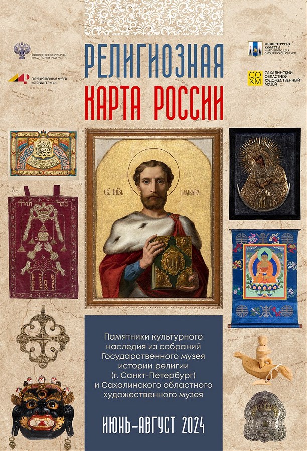 Церемония открытия выставки "Религиозная карта России" (6+) состоится 28 июня в 18:00 в Сахалинском областном художественном музее. Она организована в партнёрстве с Государственным музеем истории религии (Санкт-Петербург).