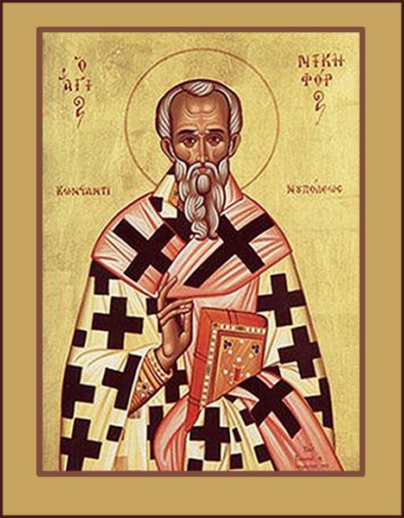Святитель Никифор Исповедник родился в Константинополе во второй половине 8 века. Глубокая вера и готовность к подвигу исповедничества были заложены в нем его родителями, Феодором и Евдокией. Они дали сыну настоящее христианское воспитание, подкрепленное примером их собственной жизни. Отец его пострадал как исповедник православия от императора-иконоборца Константина Копронима (740–775). Мать, разделявшая все испытания своего мужа, последовала за ним в изгнание, а после его смерти вернулась в Константинополь и окончила жизнь в иночестве. Святой Никифор получил хорошее светское образование, но больше всего изучал Священное Писание и читал духовные книги.