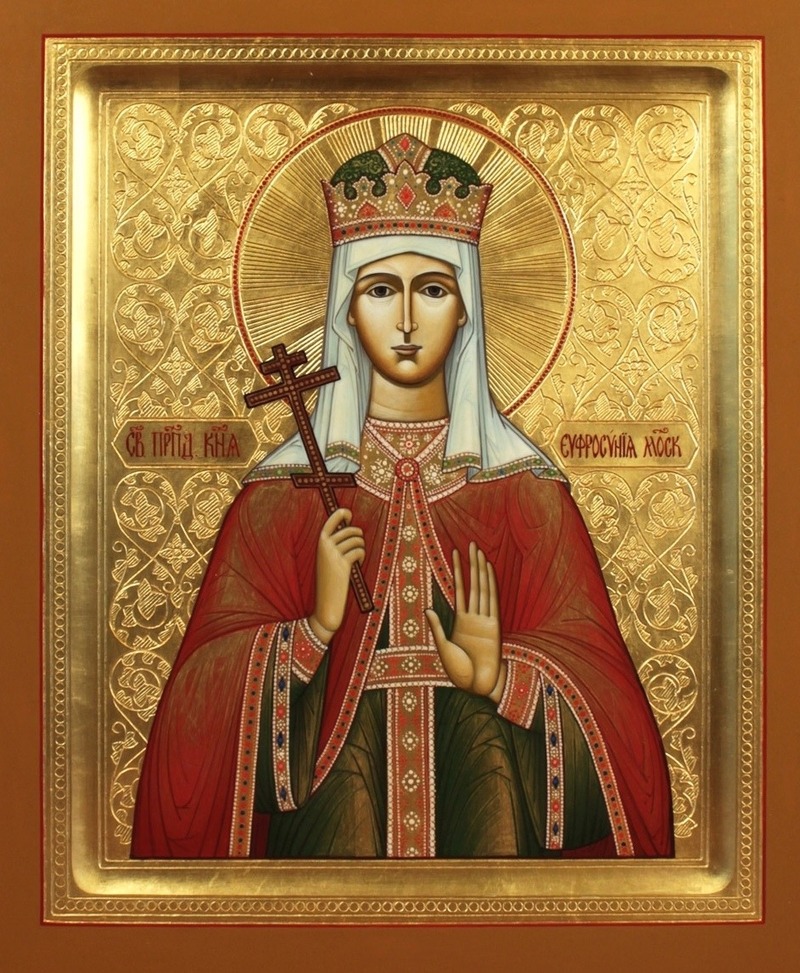 Святая великая княгиня Евдокия родилась в 1353 году. Она была дочерью суздальского князя Димитрия Константиновича († 1383) и его супруги княгини Анны. С младенческих лет воспитанная в духе христианского благочестия, Евдокия отличалась тихим, кротким нравом. Но, живя в Суздале и Переяславле-Залесском, в неспокойной обстановке постоянных междоусобных распрей, которые вели с ее отцом удельные князья, с ранних лет княгиня Евдокия привыкла полагать все свое упование на Бога. В 1367 году она стала супругой благоверного великого князя московского Димитрия Донского. Их счастливый союз был залогом союза и мира между Московским и Суздальским княжествами. Любовь к супругу и детям княгини Евдокии освящалась ее любовью к Богу. Дела христианского милосердия княгиня и ее супруг сочетали с подвигами поста и молитвы. В своей жизни они полагались на помощь святых, трудами которых была в те времена столь достославна Русская земля.