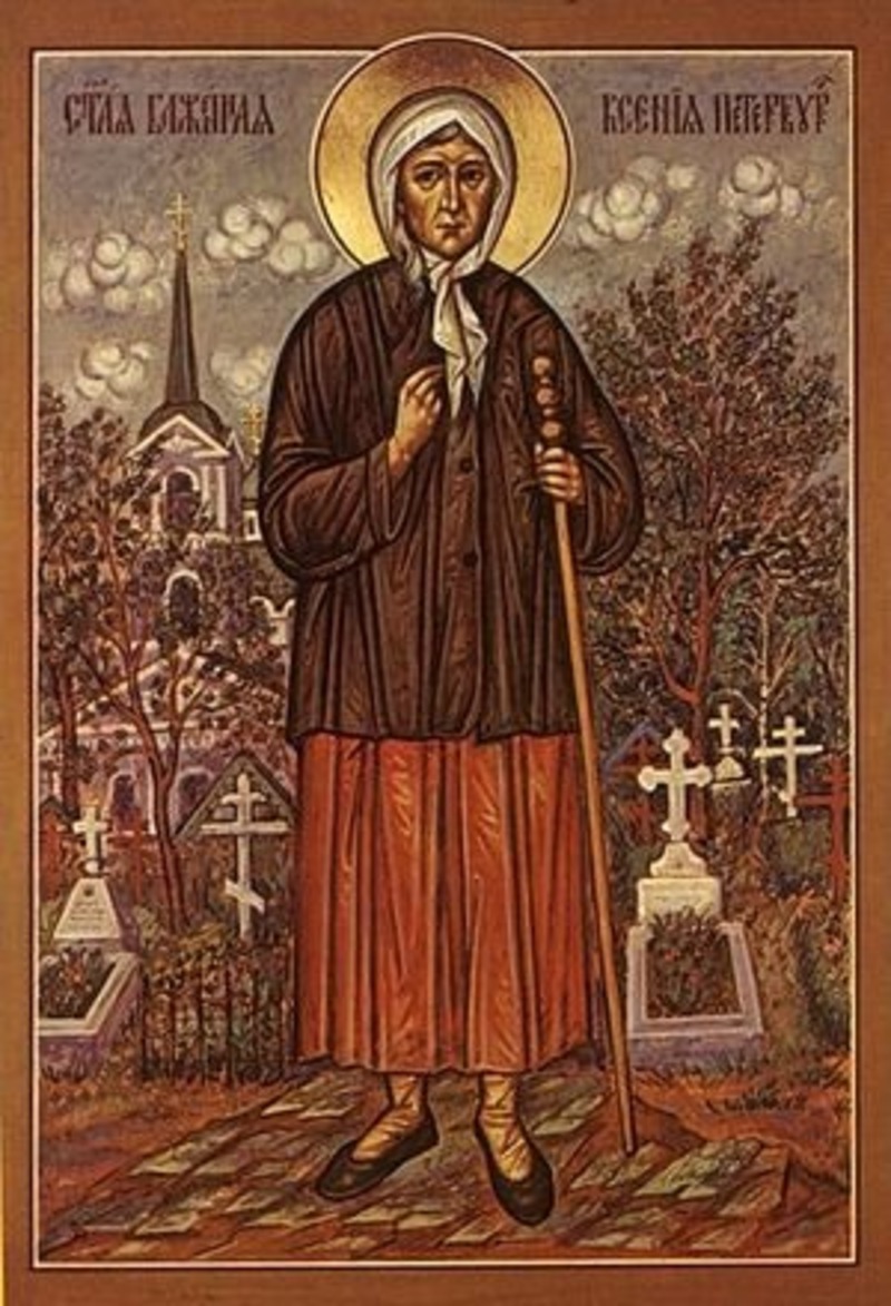 Блаженная Ксения родилась между 1719 и 1730 годами. О ее детстве и юности ничего не известно, началом подвига юродства Ксении стала внезапная смерть мужа, умершего без покаяния.