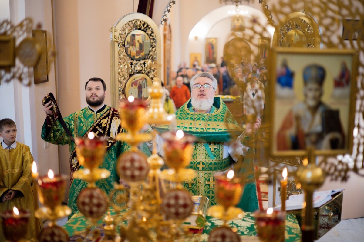 Богослужение возглавил настоятель собора иеромонах Аполлинарий (Обухов) в сослужении ключаря иерея Владислава Ивлютина и соборного духовенства.