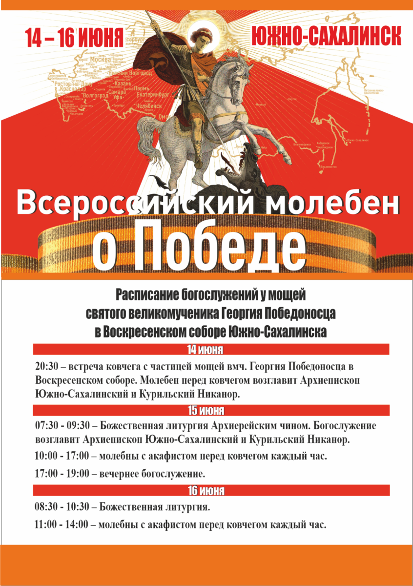 Расписание богослужений у мощей вмч. Георгия Победоносца в Воскресенском соборе Южно-Сахалинска