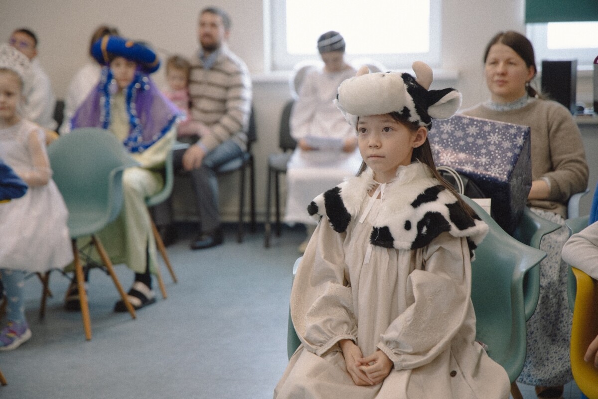 Волхвы, пастухи, иудейский царь Ирод, ангелы, быки, барашки, козлики и другие персонажи вертепного действа в чудесных костюмах ожидали представления, которое началось с пения тропаря праздника и приветственного слова духовника школы иерея Владислава Ивлютина.