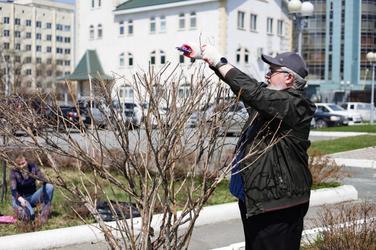 13 мая прихожане Воскресенского собора островной столицы, во главе с настоятелем и духовенством, приняли участие в субботнике на территории храма.