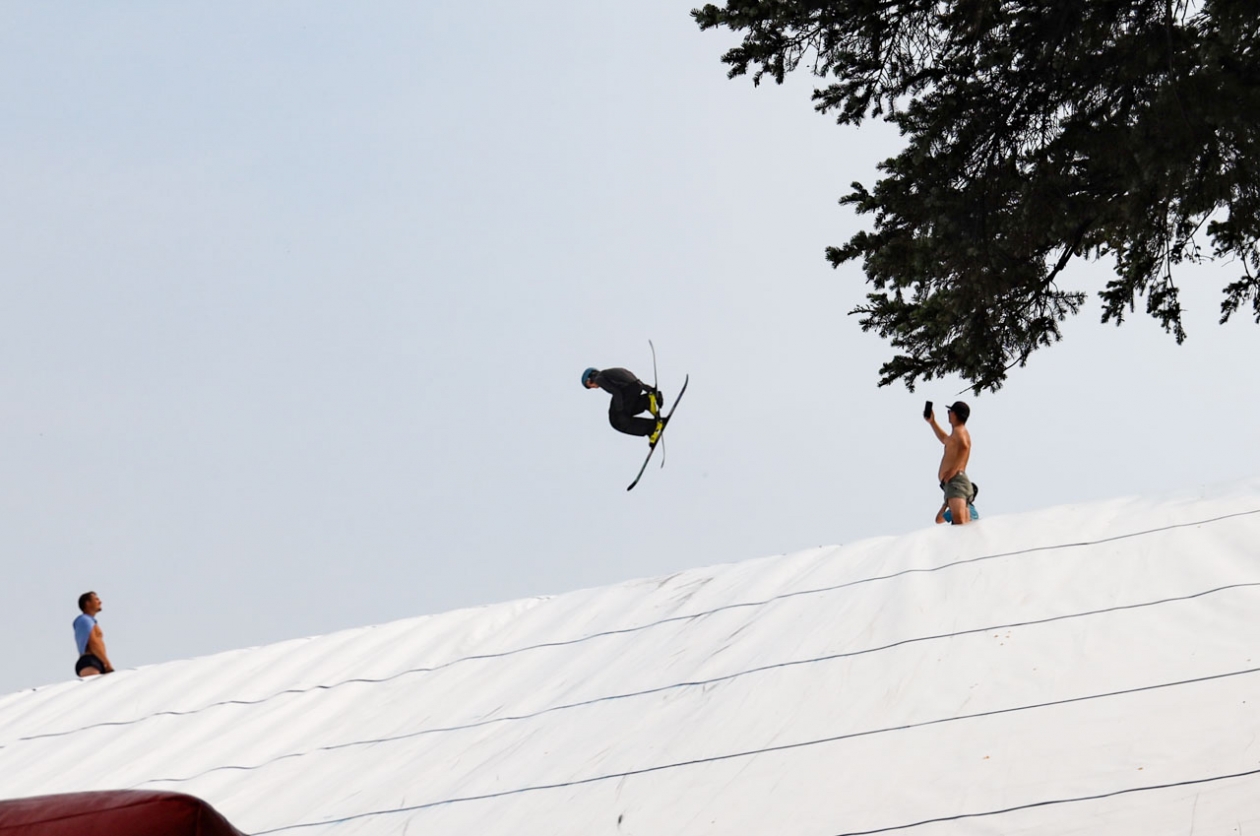 Огромная подушка и трамплины со специальными пластиковыми щетками и системами полива работают на Парковой (Городухе) второй год. Сейчас площадка функционирует в тестовом режиме: организаторы еще работают над системой доставки спортсменов наверх. На качестве это не сказывается.