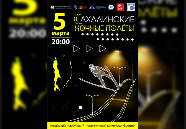Мероприятие по прыжкам на лыжах с трамплина «Сахалинские ночные полёты» пройдёт в областном центре 5 марта на трамплинном комплексе «Высота» (пер. Алтайский, 7). Начало в 20:00.
