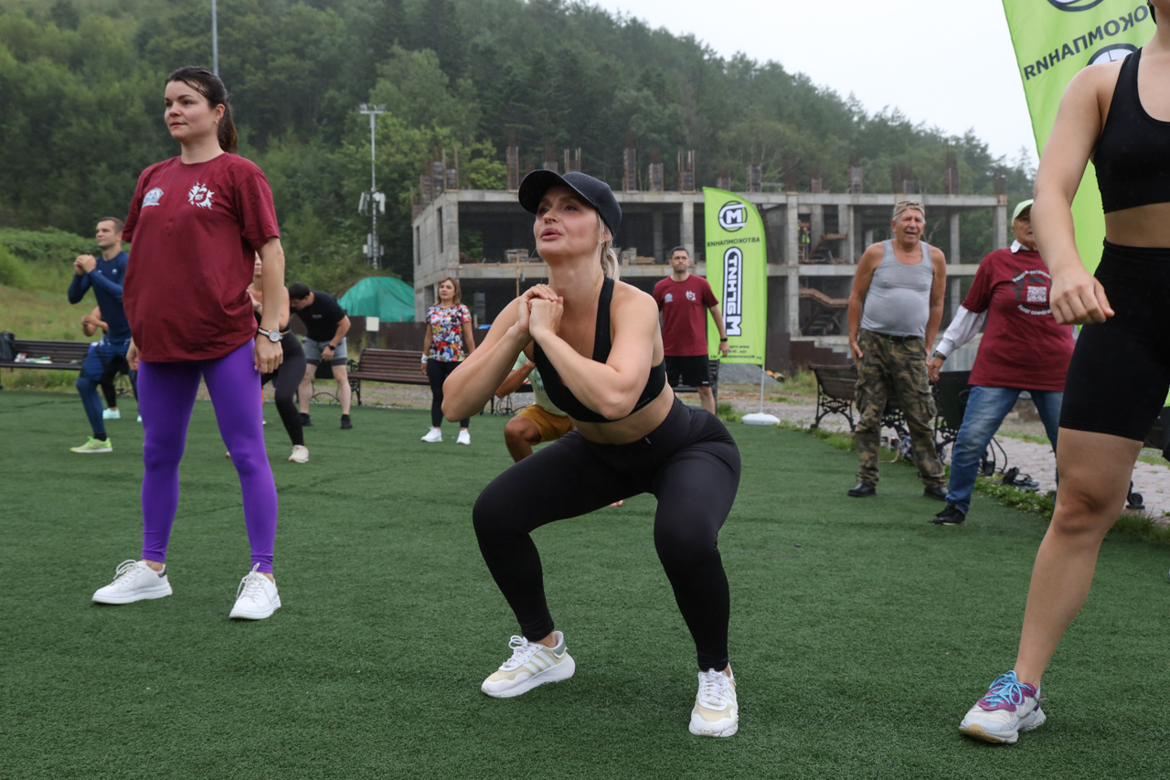 Пятый ежегодный марафон приседаний прошёл на средней станции СТК «Горный воздух» в Южно-Сахалинске. Мероприятие собрало более 100 любителей здорового образа жизни. Им предстояло в течение часа совершить 1200 приседаний – с интервалом «одно повторение в три секунды».