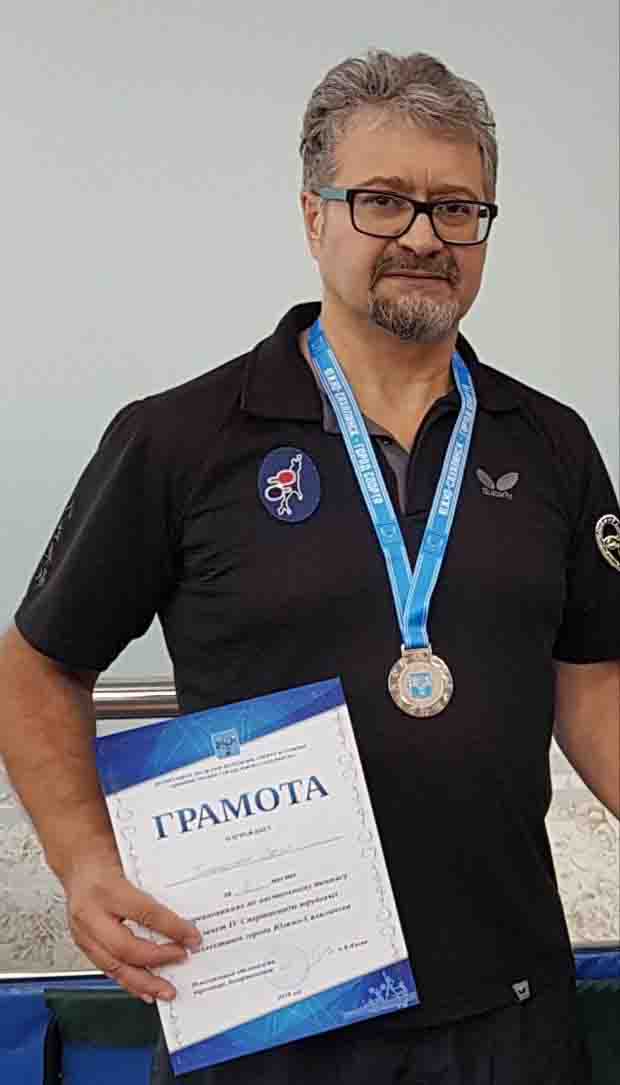 Спортивные награды. У него легкая рукаГимнастику для рук, так необходимую хирургу, доктор получает играя в настольный теннис. Он кандидат в мастера спорта. В его рабочем кабинете многочисленные кубки и медали спортивных состязаний. Играл в студенчестве во время учебы в Хабаровском мединституте, играет в настольный теннис и сейчас.