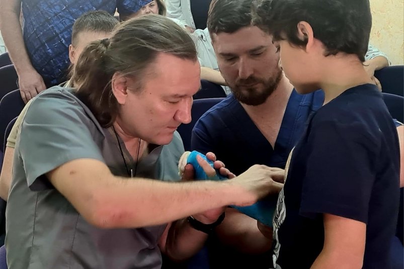 — Для нас это новая методика. Использование гипса у ребенка с ДЦП неудобно ни самому малышу, ни ухаживающим родственникам, ни медперсоналу. Низкотемпературный пластик — легкий, дышащий, с ним можно мыться. Мы готовы к применению нового материала, с которым нашим пациентам будет значительно легче проходить реабилитацию и послеоперационный период, — рассказал заведующий травматологическим отделением детской областной больницы Георгий Парсаданов.