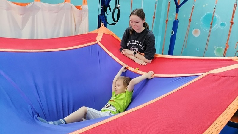 «Так как сейчас деток очень много с аутическим спектром, мы и используем успешно „Дом Совы“, погружаемся туда, можем релаксировать, познавать себя через баланс, пространственное воображение, погружаясь в бочку, или прыгая на батуте для того, чтобы понять как наше тело двигается. К работе с такими детками я пришла всего несколько лет назад, трудилась совсем в другой структуре, но я поняла, что мне важно себя найти. Поняла, что хочу приносить пользу именно таким детям-аутистам. Почему? Потому что как специалист являюсь терпеливым и очень люблю детей. Теперь понимаю, что это мое, мне хватает терпения и мудрости. Когда у меня спрашивают родители, как занимается их малыш, я всегда говорю о том, что мы идем с вами маленькими шагами, благодаря которым всего добьемся. Поэтому прорабатываем даже мелочи. Я слежу всегда за тем, чтобы ребенок пробовал, выполнял одно и то же, повторял несколько раз, приобщаю его к спорту. Не зря наше направление называется „Адаптивная физическая культура“. Это и есть один из методов сенсорной интеграции», — поделилась комментарием специалист по реабилитации инвалидов реабилитационного центра для детей и подростков с ограниченными возможностями «Преодоление» Евгения Шабловская.