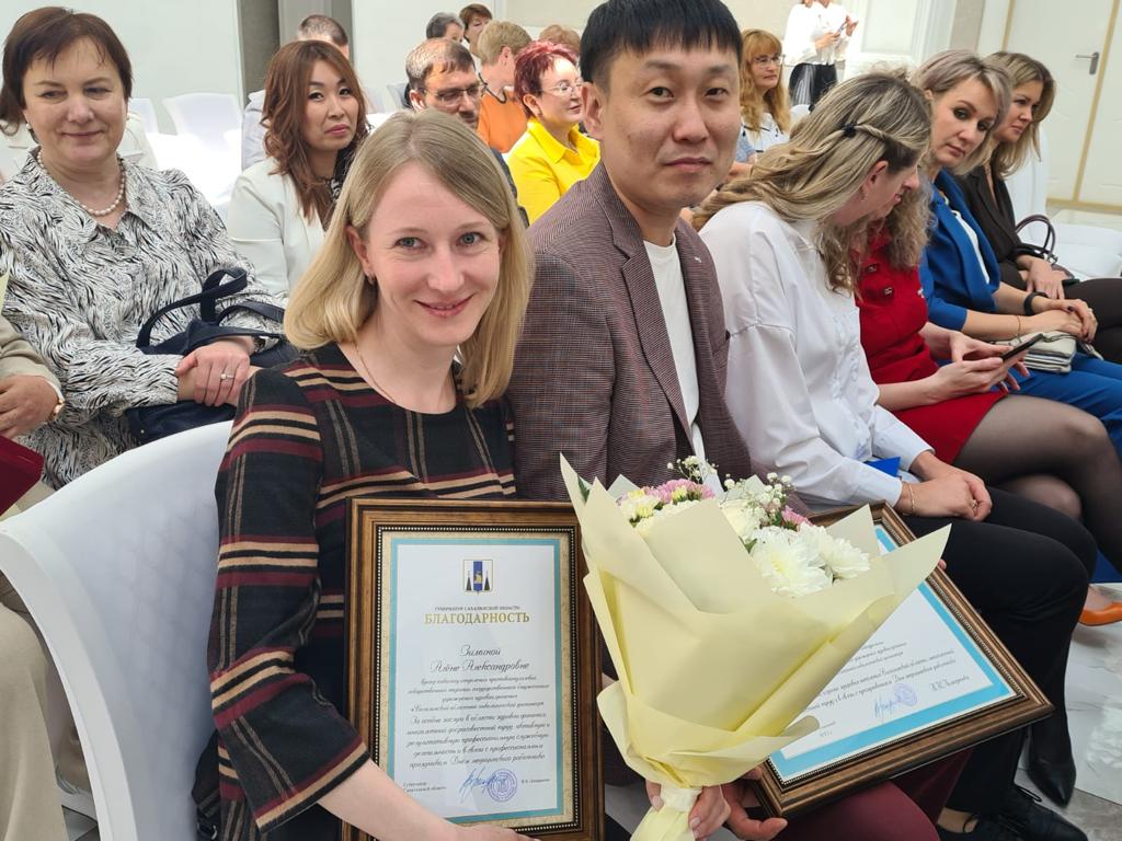 Достижения в труде были отмечены наградами. Почетная грамота министерства здравоохранения РФ вручена ведущему советнику островного минздрава Наталье Панюшкиной. Нагрудный знак отличника здравоохранения РФ получила заместитель главного врача городской больницы имени Анкудинова Елена Ясакова.