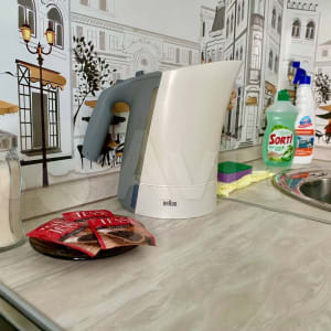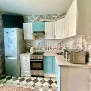 В квартире вся необходимая бытовая техника: холодильник, микроволновая печь, плита, , чайник, утюг с гладильной доской, стиральная машина, напольная сушилка, фен.